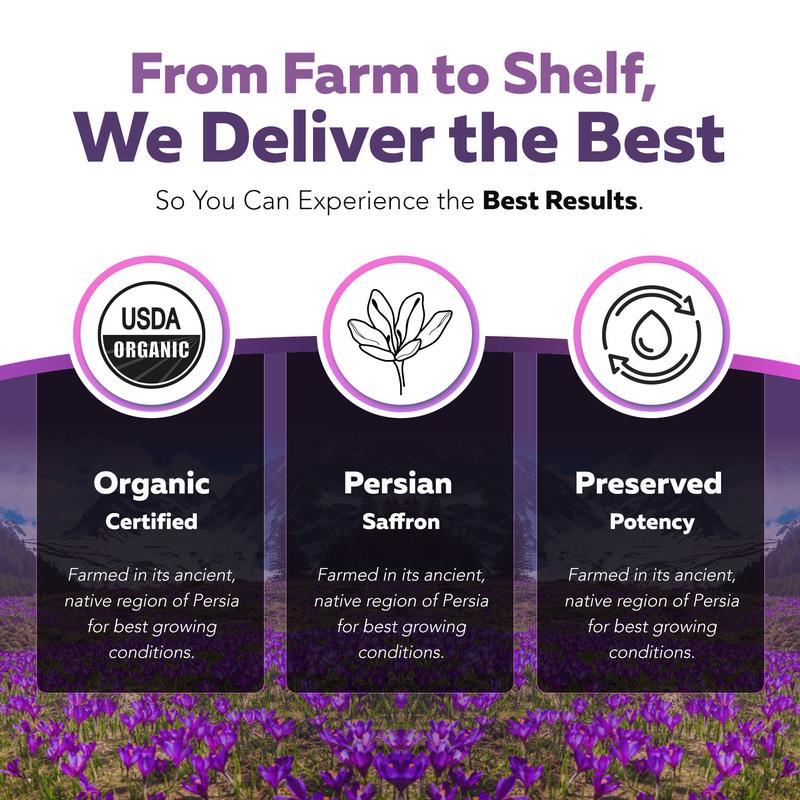 Our optimized saffron extract delivers key bioactive compounds including safranal, crocins, and safromotivines. This carefully balanced profile supports calm, steady mood and mental clarity, helping your body respond to everyday stress while maintaining emotional balance throughout the day.